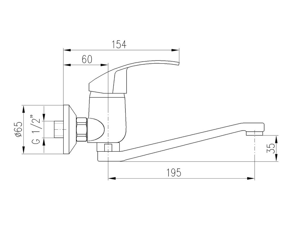 Vodovodní baterie dřezová/umyvadlová nástěnná s plochým "S" ramínkem 195 mm.