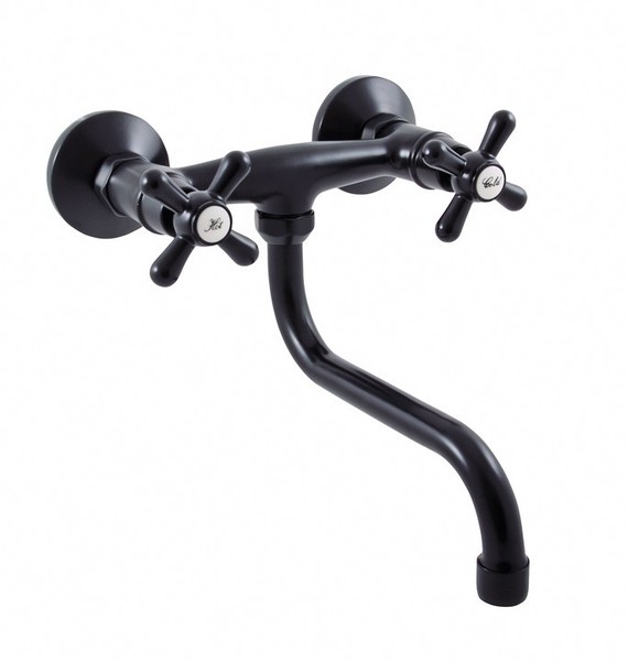 Vodovodní baterie dřezová/umyvadlová nástěnná s kulatým ramínkem.