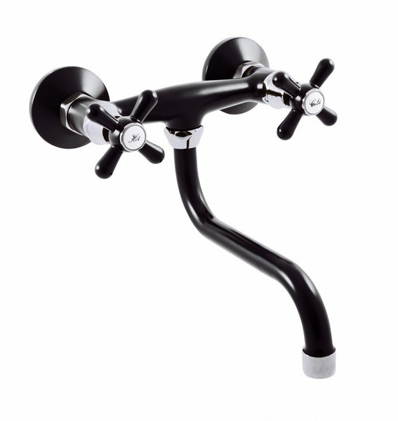 Vodovodní baterie dřezová/umyvadlová nástěnná s kulatým ramínkem.