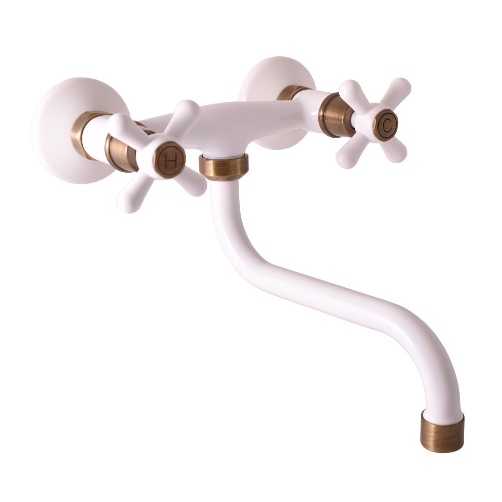 RAV Slezák - MORAVA RETRO - Umyvadlová/dřezová Baterie, Bílá/Stará mosaz (Bronz), 150 mm (MK101.5/21BSM)