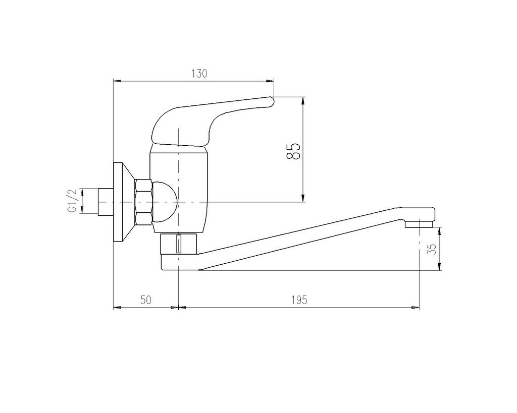 Vodovodní baterie dřezová/umyvadlová nástěnná s plochým "S" ramínkem 195 mm.