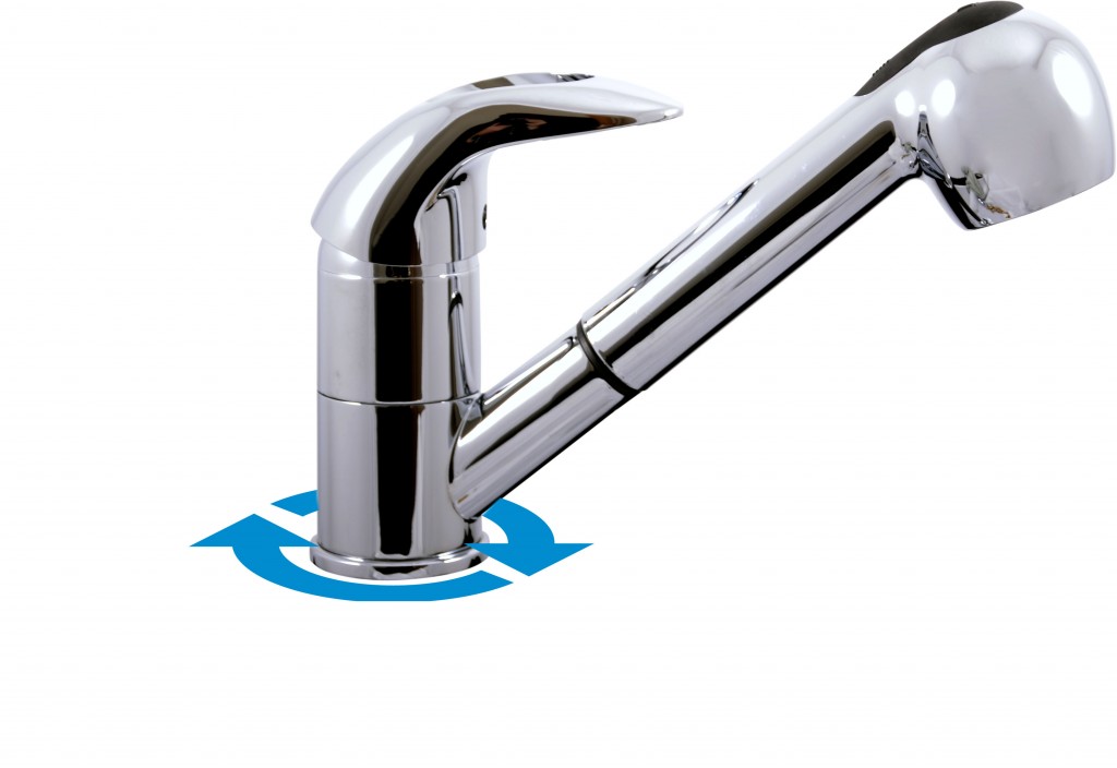 Vodovodní baterie dřezová stojánková s vytahovací sprchou.
