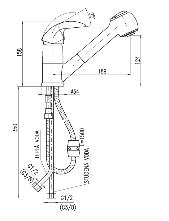 Vodovodní baterie dřezová stojánková s vytahovací sprchou.