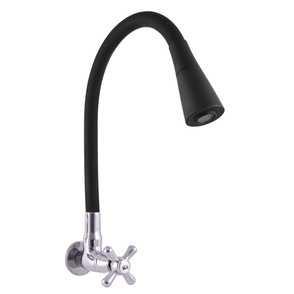Vodovodní baterie nástěnná na jednu vodu s flexibilním otočným ramínkem se sprchou.