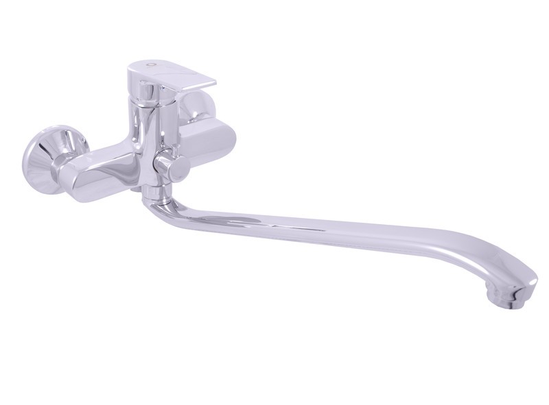 Vodovodní baterie pro vanu a umyvadlo nástěnná s plochým, otočným "S" ramínkem.