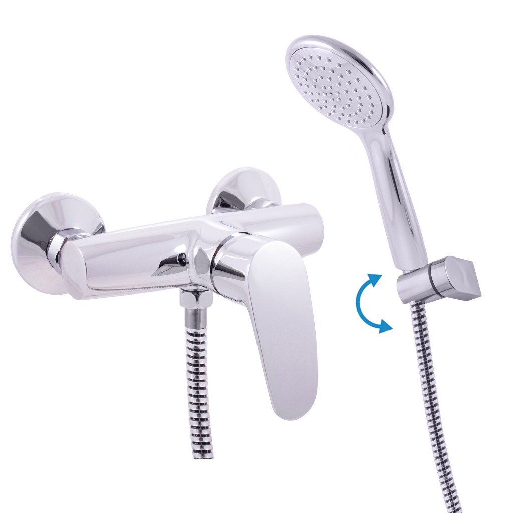 Vodovodní baterie sprchová nástěnná se sprchou a otočným držákem.