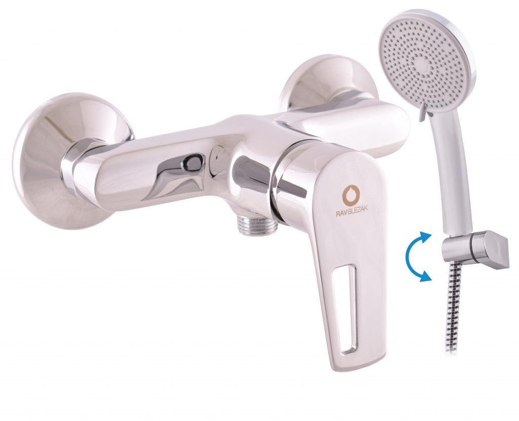 Vodovodní baterie sprchová nástěnná se sprchou a otočným držákem.