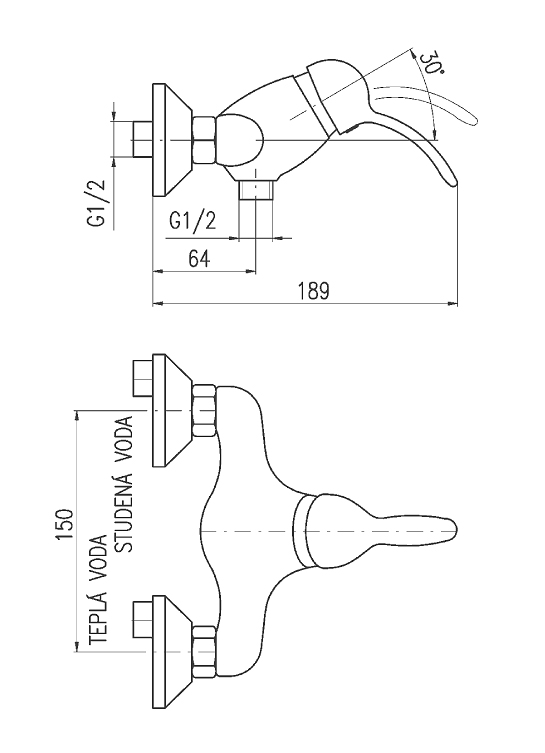 Baterie sprchová Labe se vyrábí pouze v rozteči 150 mm.
