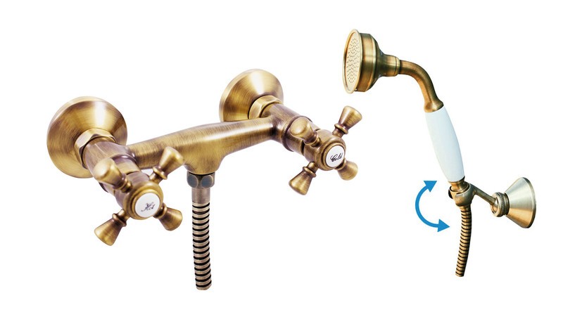 Vodovodní baterie sprchová nástěnná se sprchou a otočným držákem.