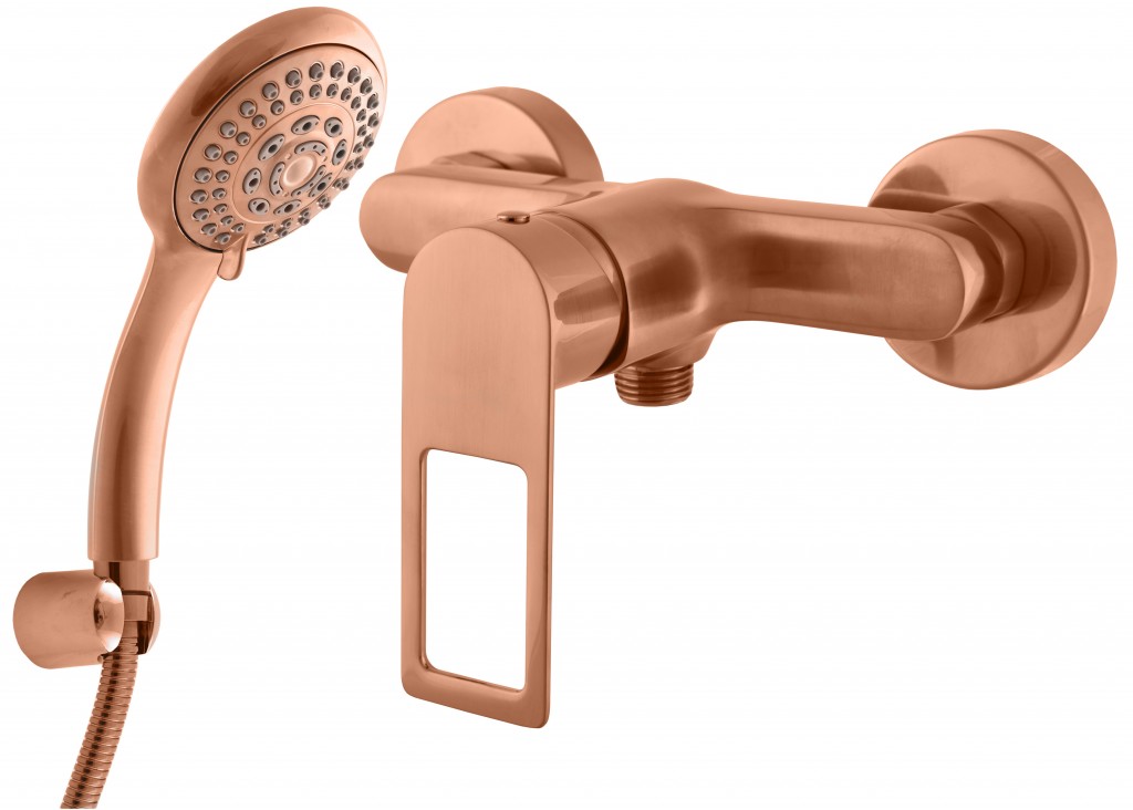 Vodovodní baterie sprchová nástěnná se sprchou a pevným držákem.
