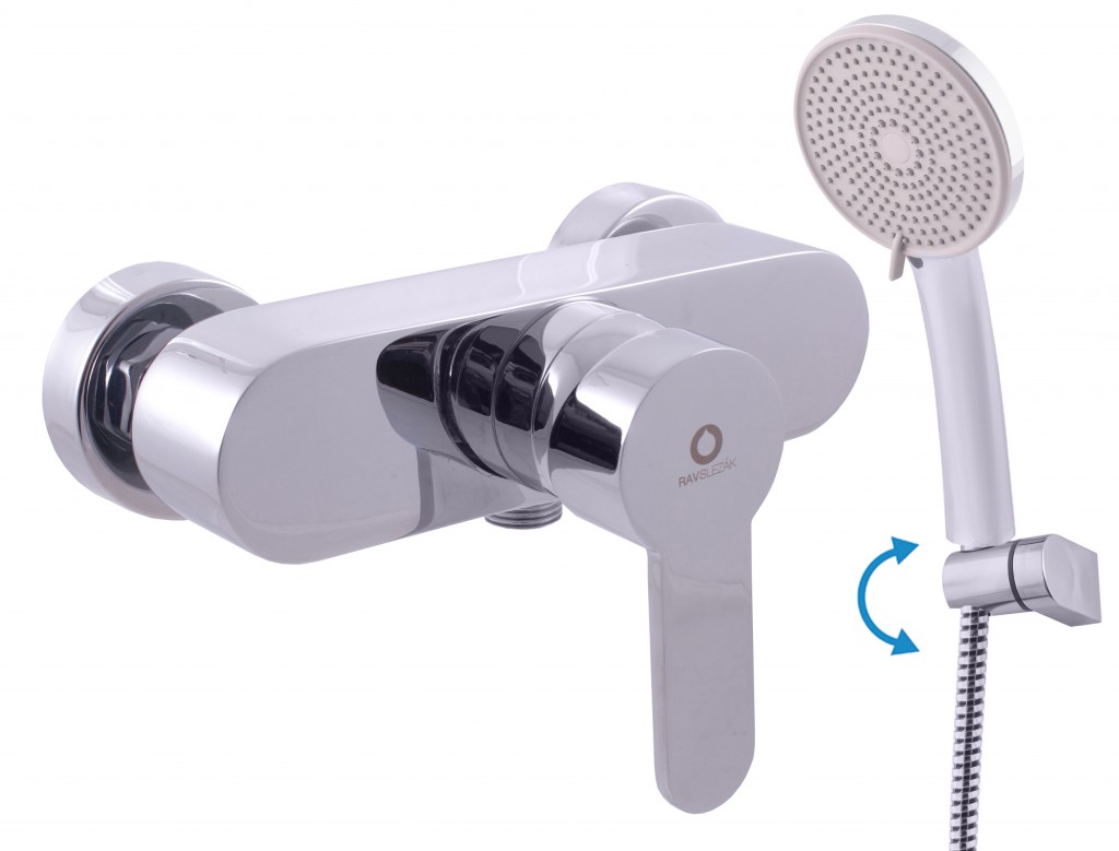 Vodovodní baterie sprchová nástěnná se sprchou a otočným držákem.