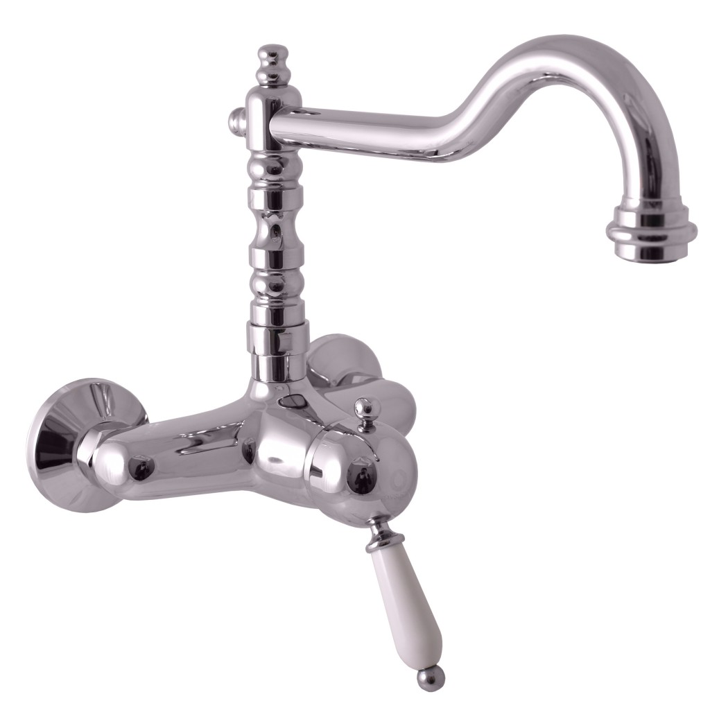 Vodovodní baterie umyvadlová/dřezová nástěnná s kulatým otočným ramínkem.