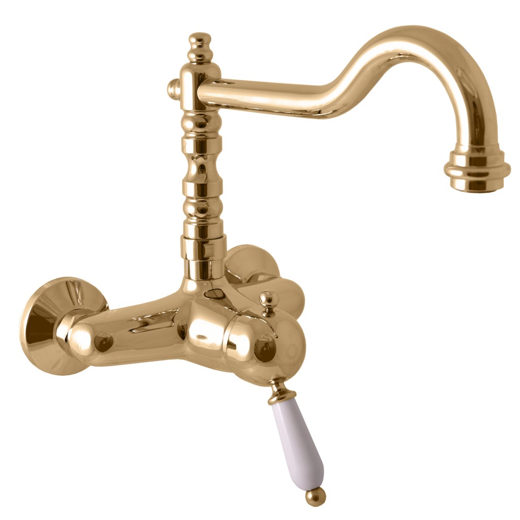 Vodovodní baterie umyvadlová/dřezová nástěnná s kulatým otočným ramínkem. tato baterie je vybavena keramickou kartuší o průměru 35 mm KA3501 provedení zlato Baterie umyvadlová/dřezová Labe se vyrábí pouze v rozteči 150 mm. Tuto baterii lze kombinova… (celý popis)
