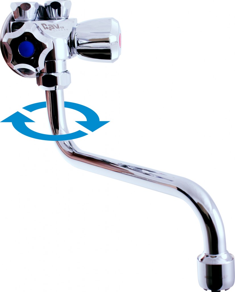 Vodovodní baterie klasická umyvadlová/dřezová ze stěny, s otočným kulatým ramínkem 160 mm pro nízkotlaké ohřívače.