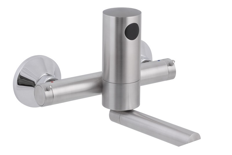 Vodovodní baterie umyvadlová nerezová nástěnná na 2 vody senzorová