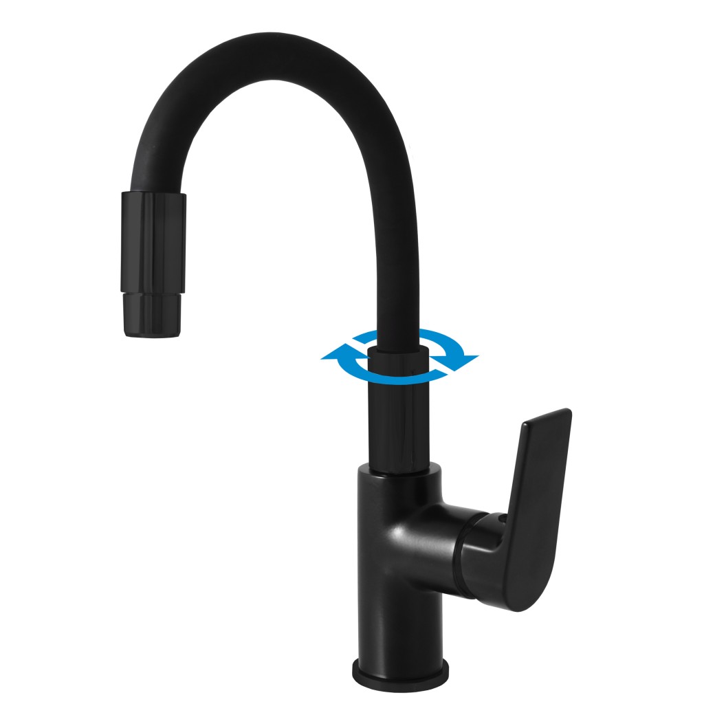 Vodovodní baterie umyvadlová stojánková s flexibilním otočným ramínkem.
