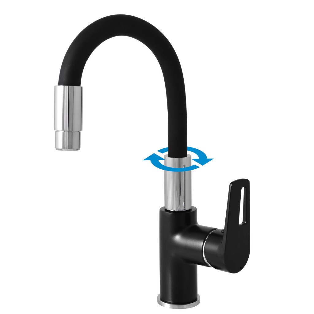 Vodovodní baterie umyvadlová stojánková s flexibilním otočným ramínkem - černá matná/chrom.