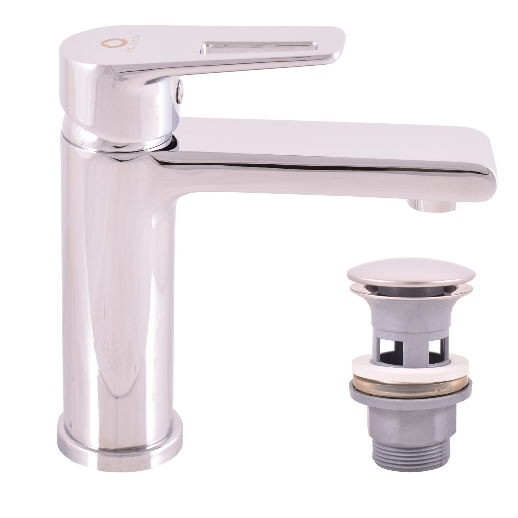 Vodovodní baterie umyvadlová stojánková s výpustí s výklopnou zátkou.