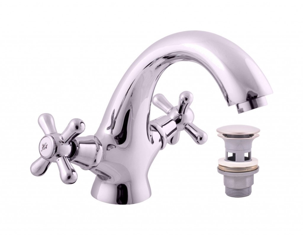 Vodovodní baterie umyvadlová stojánková s výpustí click-clack MD0808 - kov/plast.