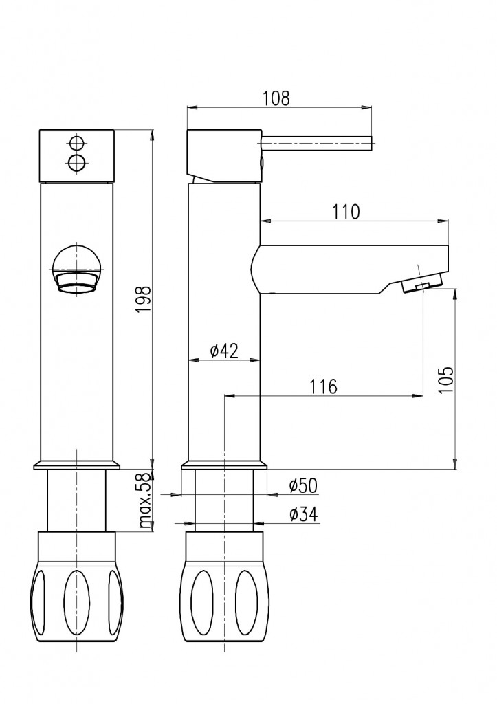 Vodovodní baterie umyvadlová stojánková bez otvírání odpadu.