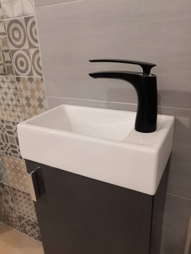 Vodovodní baterie umyvadlová stojánková bez otvírání odpadu.