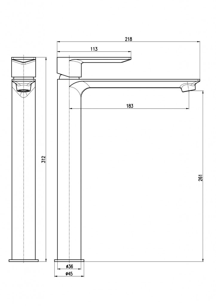 Vodovodní baterie umyvadlová stojánková bez otvírání odpadu, vysoká.