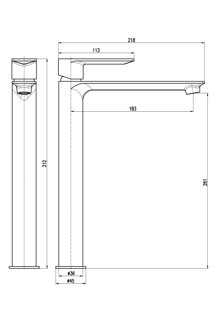Vodovodní baterie umyvadlová stojánková bez otvírání odpadu, vysoká.