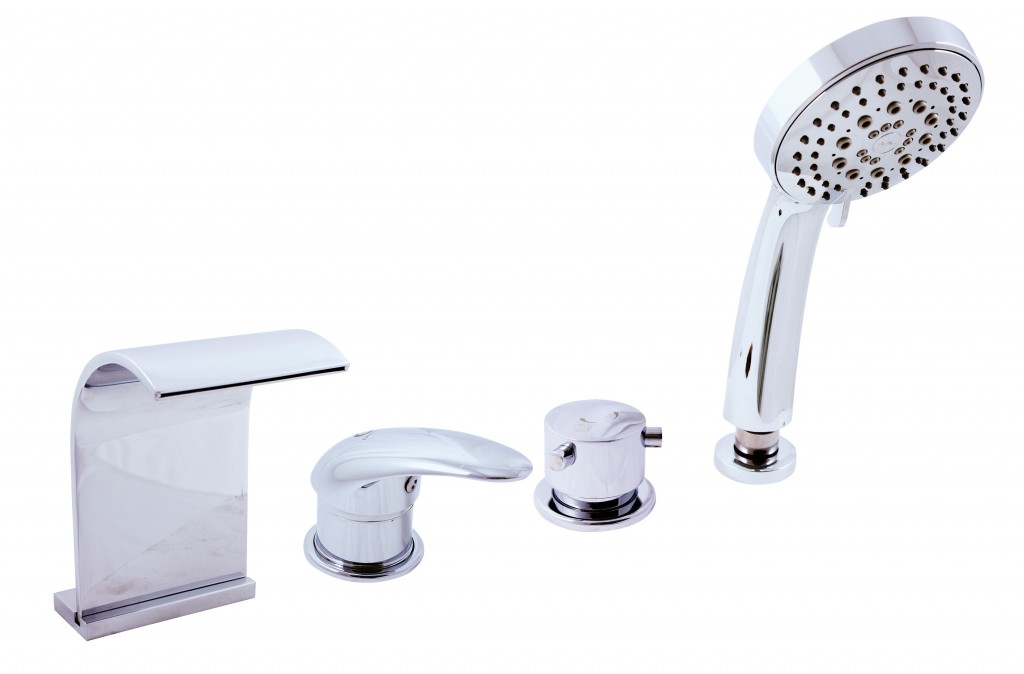 Vodovodní baterie vanová stojánková čtyřotvorová s keramickým přepínačem MD0448, samonavíjecí sprchou a 2m hadicí.