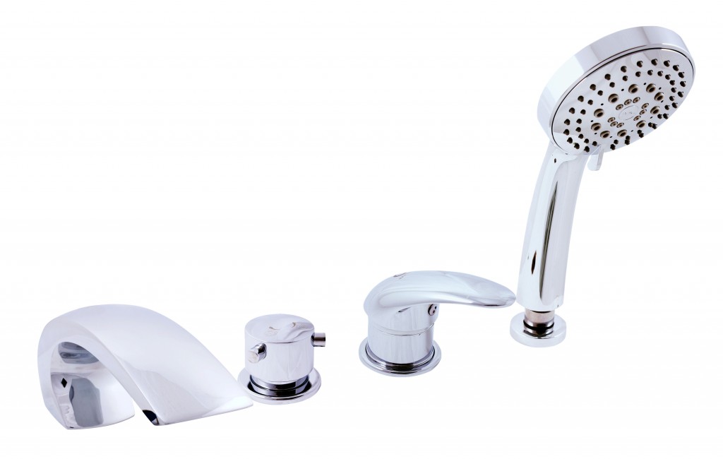 Vodovodní baterie vanová stojánková čtyřotvorová s keramickým přepínačem MD0448, samonavíjecí sprchou a 2m hadicí.
