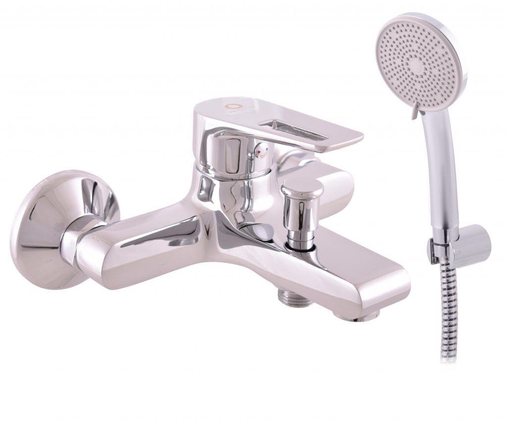 Vodovodní baterie vanová nástěnná se sprchou a pevným držákem.