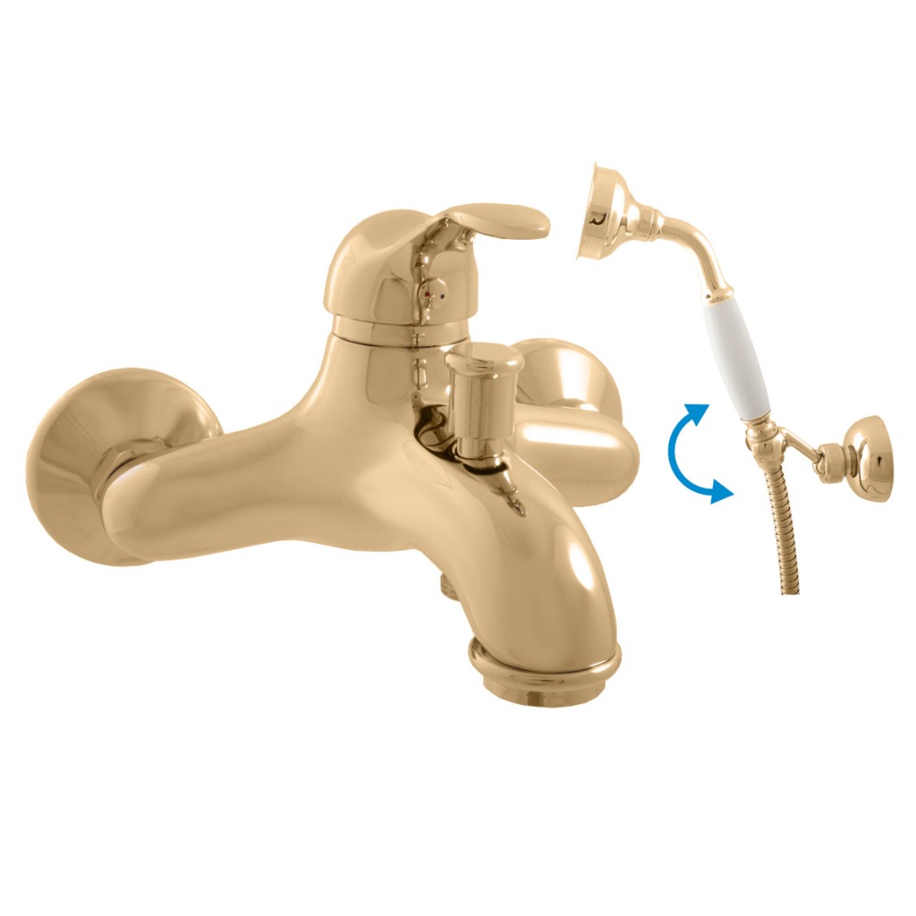 Vodovodní baterie vanová nástěnná se sprchou a otočným držákem.