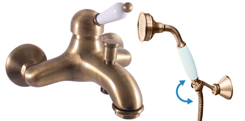 Vodovodní baterie vanová nástěnná se sprchou a otočným držákem.