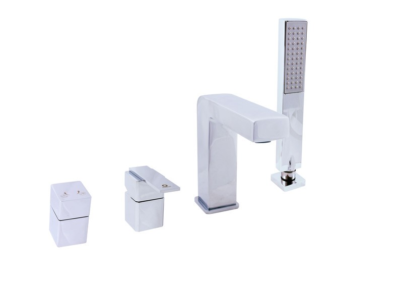 Vodovodní baterie vanová stojánková čtyřotvorová s keramickým přepínačem, samonavíjecí 2m hadicí a sprchou.