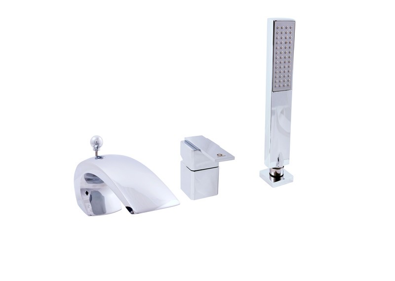Vodovodní baterie vanová stojánková tříotvorová s přepínačem ve výtoku, samonavíjecí 2m hadicí a sprchou.