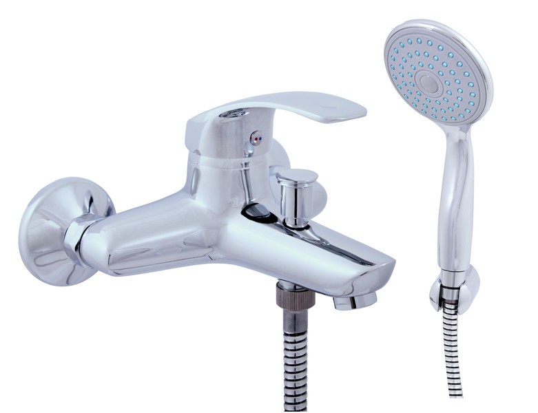 Vodovodní baterie vanová nástěnná se sprchou a pevným držákem.