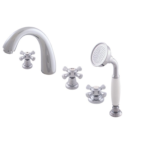 Vodovodní baterie vanová stojánková pětiotvorová s keramickým přepínačem, samonavíjecí sprchou a 2m hadicí.