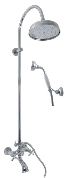 Vodovodní baterie vanová MORAVA RETRO s hlavovou a ruční sprchou se skládá z: