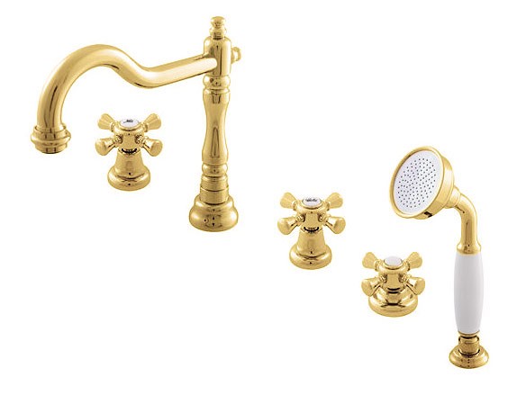 Vodovodní baterie vanová stojánková pětiotvorová s keramickým přepínačem, samonavíjecí sprchou a 2m hadicí.
