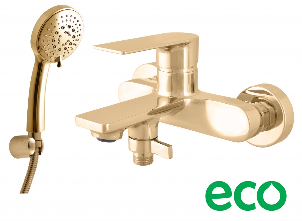 - Vodovodní baterie vanová nástěnná se sprchou a pevným kovovým držákem.