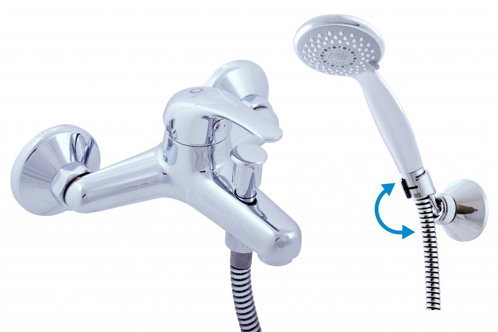 Vodovodní baterie vanová nástěnná se sprchou a otočným držákem.