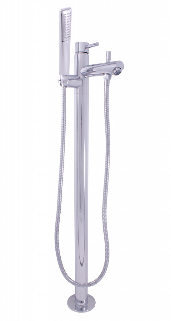 Vodovodní baterie vanová, vysoká, volně stojící se sprchou.