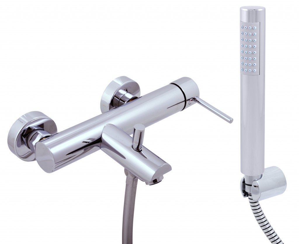 Vodovodní baterie vanová nástěnná se sprchou a pevným držákem.