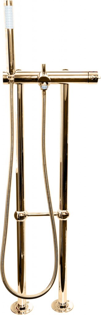 Vodovodní baterie vanová, vysoká, volně stojící se sprchou.