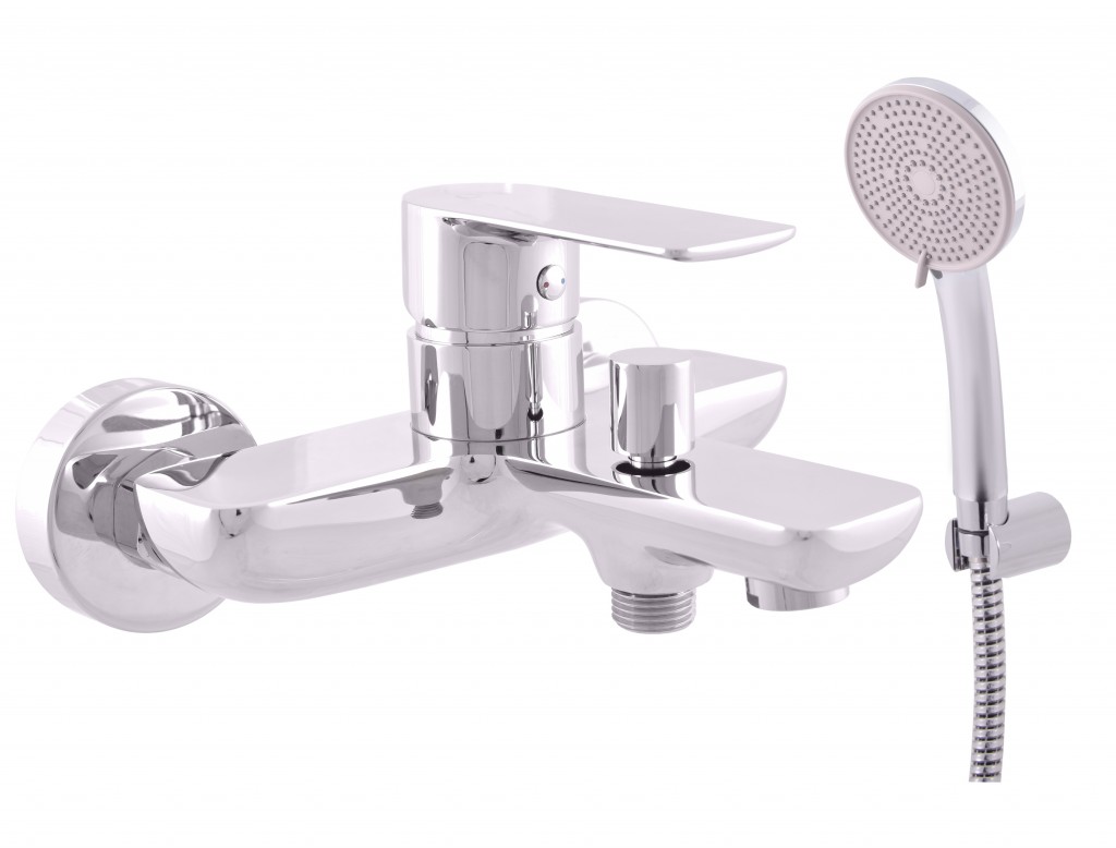 Vodovodní baterie vanová nástěnná se sprchou a pevným držákem.
