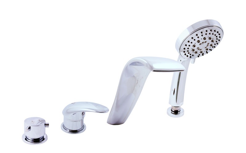Vodovodní baterie vanová stojánková čtyřotvorová s keramickým přepínačem MD0448, samonavíjecí sprchou a 2m hadicí.
