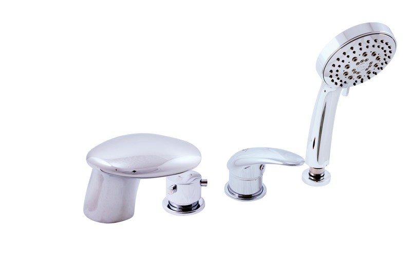 Vodovodní baterie vanová stojánková čtyřotvorová s keramickým přepínačem MD0448, samonavíjecí sprchou a 2m hadicí.