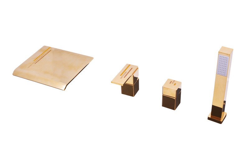 Vodovodní baterie vanová stojánková čtyřotvorová s keramickým přepínačem MD0449, samonavíjecí sprchou a 2m hadicí.