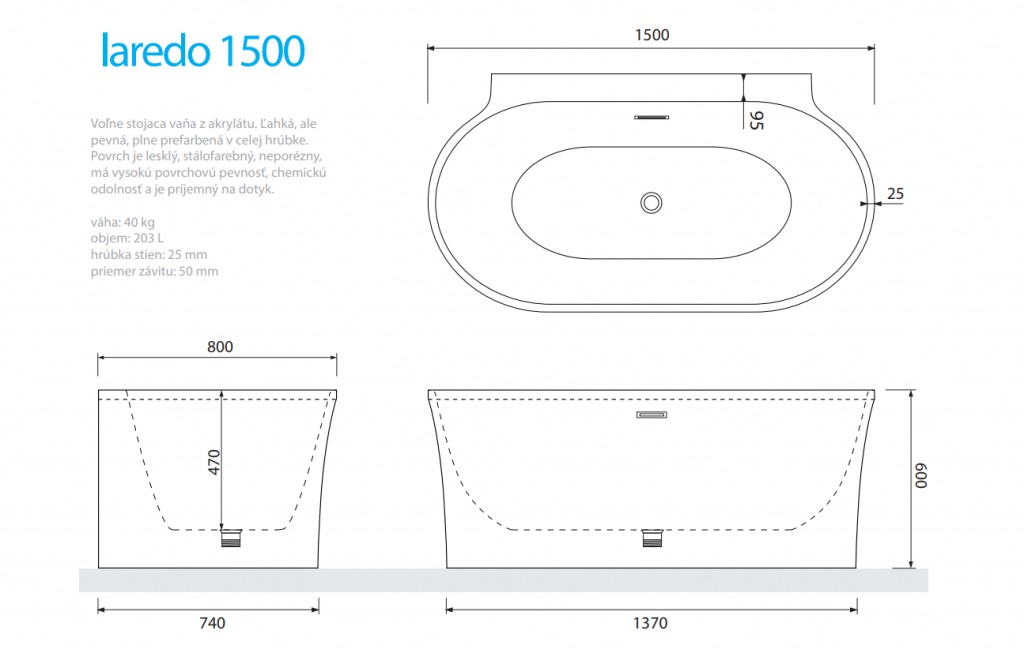 Vany z akrylátu jsou lehké, ale pevné, plně probarvené v celé tloušťce. Povrch je lesklý, stálobarevný, neporézní, má vysokou povrchovou pevnost, chemickou odolnost a je příjemný na dotek.