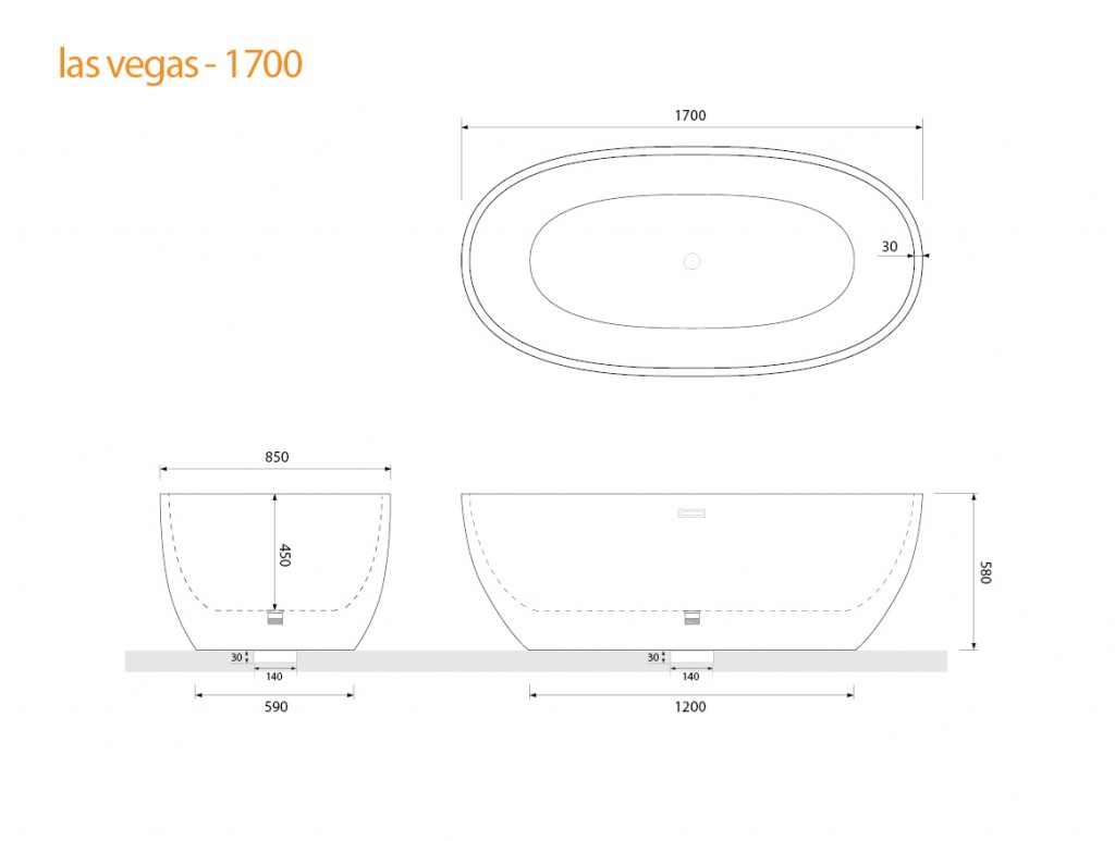 Upozornění, prostor pro sifon musí být zapuštěný v podlaze na min. hloubku viz. výkres vany.