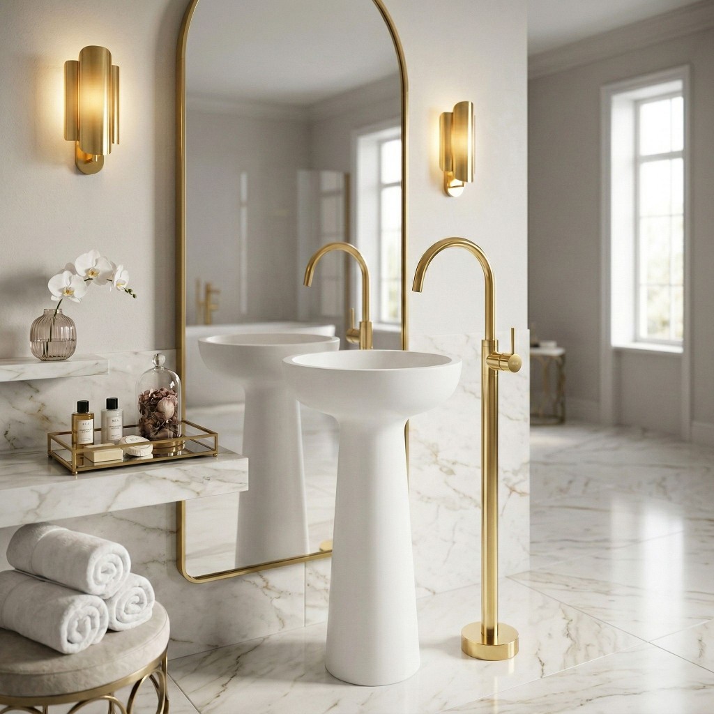 Oceňte eleganci a modernost ve své koupelně díky podlahové umyvadlové baterii Rea Lungo ve vyhotovení zlatý lesk. Jde o ideální spojení stylu a funkčnosti, které nadchne každého uživatele. Podlahová baterie vyrobená z vysoce kvalitních materiálů nejen podtrhne design vaší koupelny, ale také zajistí spolehlivost a dlouhou životnost.Provedení z mosazi – zaručuje vysokou odolnost proti korozi a poškození a dlouhou životnost konstrukce.Keramická kartuše – zajišťuje výbornou těsnost a plynulou regulaci proudu vody po dlouhá léta.Otočné ramínko – nabízí maximální volnost pohybu a komfort při každodenní hygieně.PVD povrchová úprava – moderní technologie, která chrání před poškrábáním a usnadňuje udržení dokonalé čistoty.Volně stojící montáž – dodá interiéru luxusní charakter a umožní flexibilní uspořádání umyvadlové zóny.Podlahová umyvadlová baterie Rea Lungo je volbou pro ty, kteří si cení komfortu a moderního designu. Dokonalá v každém detailu, vyrobená s důrazem na kvalitu a estetiku, bude efektní ozdobou vaší koupelny. Díky pevné konstrukci a prvotřídním komponentům získáte jistotu pohodlí a spolehlivosti každý den.